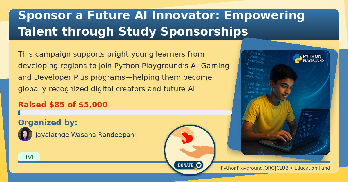 Artificial Intelligence is shaping the world faster than ever, yet countless talented youths remain left behind due to financial constraints. The Python Playground Scholarship Fund is designed to give these students access to the same opportunities as global learners — to study, build, and innovate with AI.